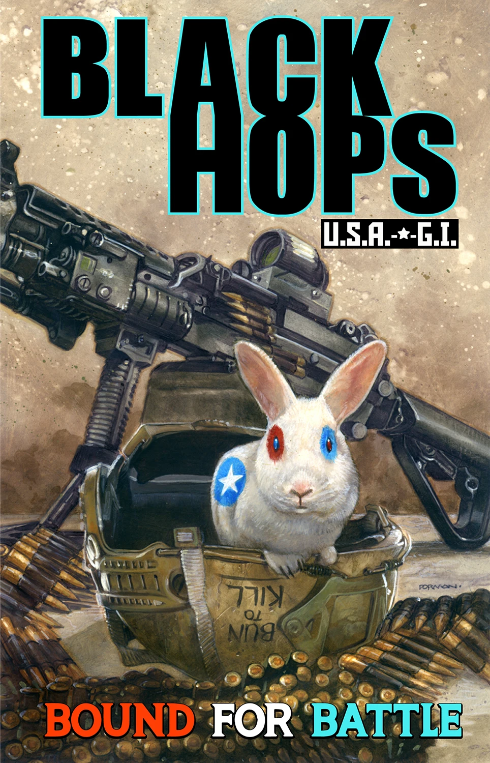 For your eyes only, Antarctic Press delivers the collected records of America’s daring, highly trained special mission rabbit, U.S.A. G.I.! ‘Buns of the Patriots’: The recondo rabbit must infilitrate a North Korean stronghold and fend off both man and beast to defuse the threat of a nuclear warhead aimed at Hawai’i.